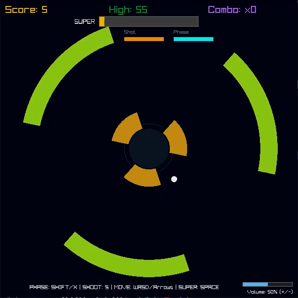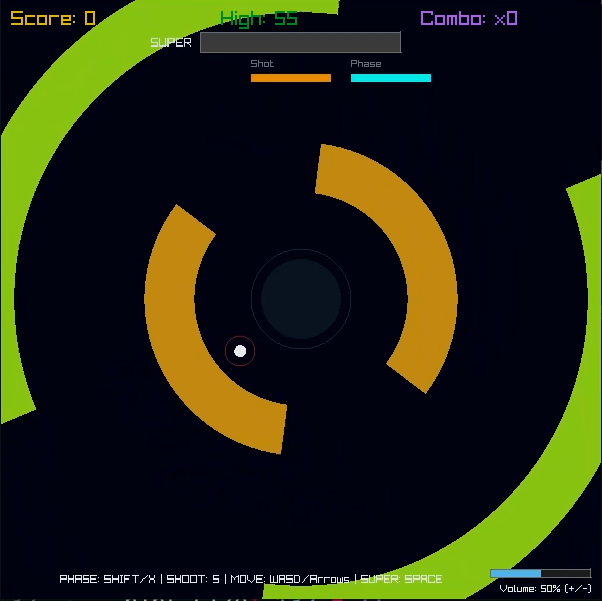 A fast, circular rhythm survival game: spin in a rotating arena, phase through hazards on beat, and chase endless peril.