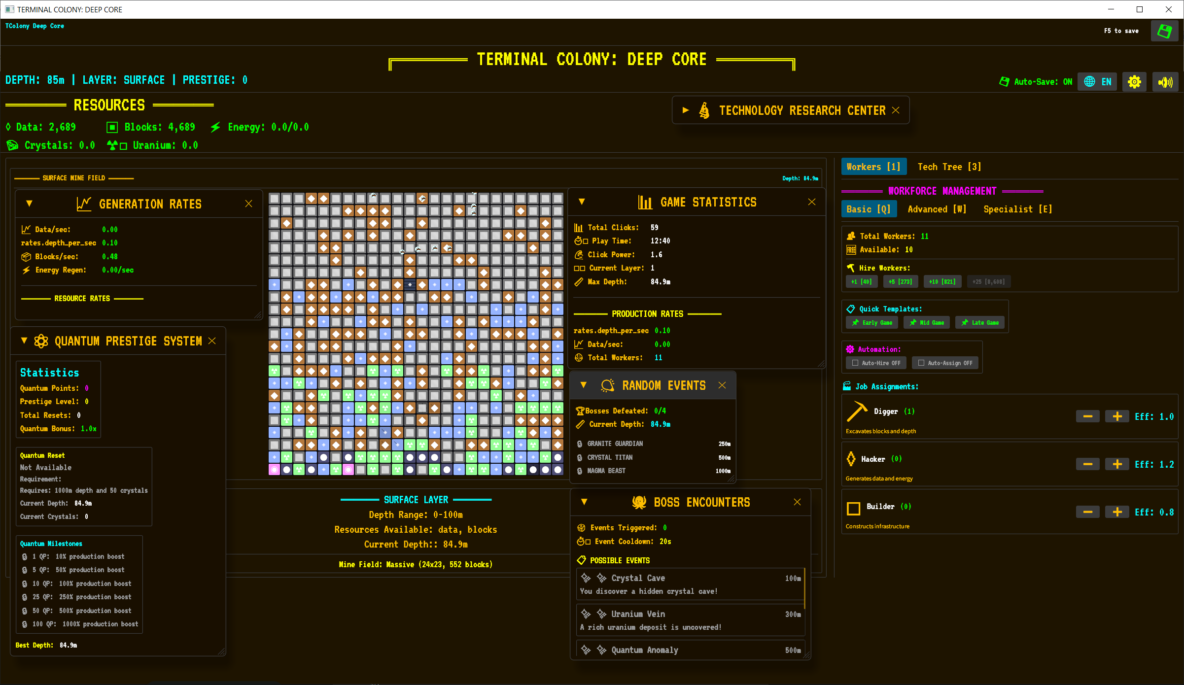 Dig deep, manage workers, research tech, and face quantum mysteries in this terminal-style incremental mining game.