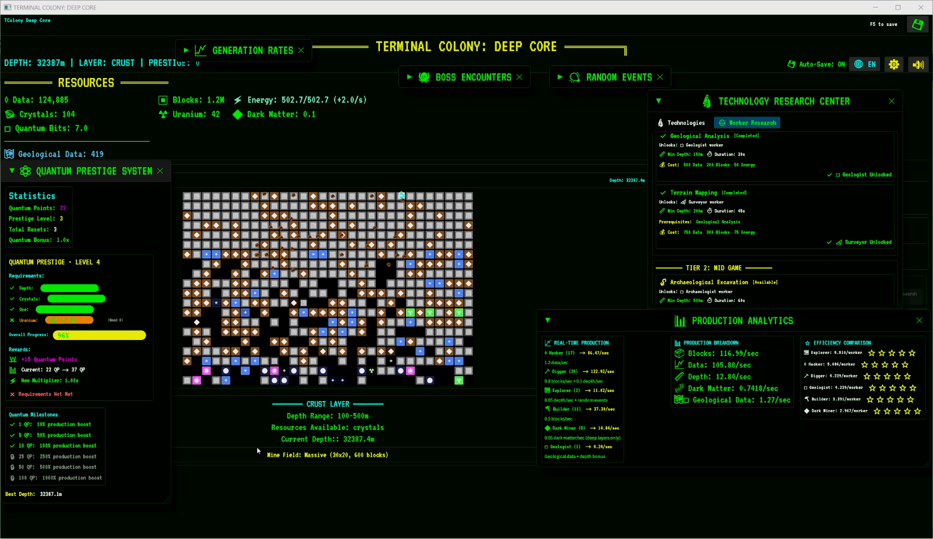 Dig deep, manage workers, research tech, and face quantum mysteries in this terminal style incremental mining game.